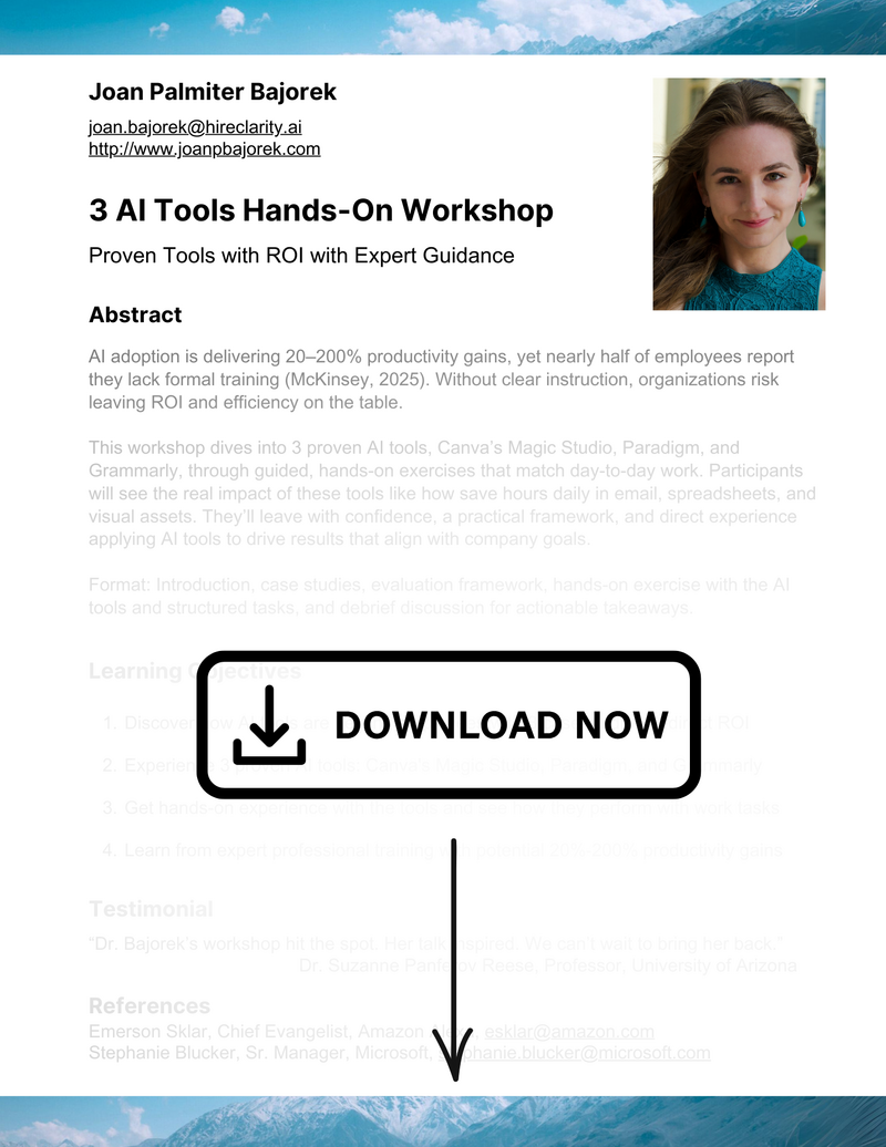 Dr. Joan Palmiter Bajorek is an AI Expert, Workshop Facilitator, and Keynote Speaker